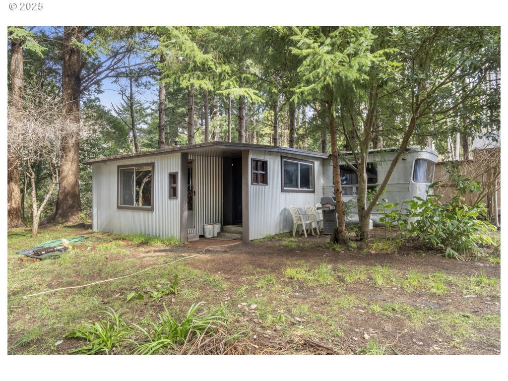 Cozy home sheltered by trees in a private location. Close to town, on city water and sewer. Large shop with R.V. parking and a carport. Single wide with remodeled add on. Great location to build a home or enjoy a simple beach cabin.