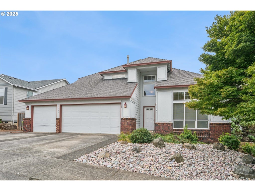 $50,000 reduction! Corner lot, TONS of Light and views of Mt. Hood & Mt. Adams. This lovely 4 bedroom (primary on main), open floor plan, entertainers kitchen ~ open to deck and 2nd living space & red oak hardwood floors. 2 bedrooms, a full bathroom (double sinks), and giant storage upstairs. Trex deck perfect for outdoor entertaining with access off primary and kitchen and a 3 car garage. Welcome home!