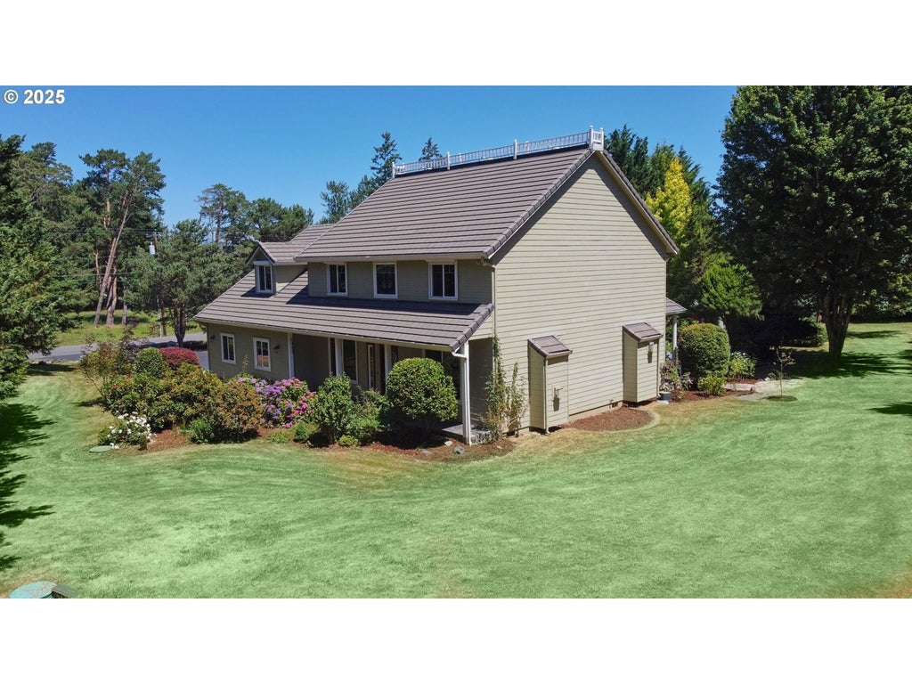 Welcome to your oasis of tranquility in an exceptional property. Two Master suites plus 2 additional bedrooms; lrg windows everywhere to enjoy our beautiful NW scenery and your own private .77 acre lot. Walkway to home has lovely stamped concrete. Step inside on marble tile entryway to a cozy living room with wood mantle surround gas fireplace. A few steps more to be at the lovely DeWils' kitchen creation! Lrg island,easy close doors and drawers; high end appliances like Subzero refrigerator, Wolf double oven (one convection)Miele SS dishwasher and Wolf 5 burner cooktop. Granite countertops in beautiful black swirl pattern, tons of storage space,wine rack, WI pantry,deep matte sink,room for a coffee bar and more. Dinette area plus family room with wood floors, gas FP, doors to backyard and auto shutters on lrg windows. This is a gathering place for family and friends; dining room w/wainscoting and crown molding. Primary bedroom features a balcony to enjoy outside wonders; soaking tub,lrg tiled walk in shower; lrg WI closet,dual vanities and unique rockwork flooring. Second Master also has storage galore, dormer,bonus area which is currently used for exercise equipment but is wonderful flex space for variety of possible uses. Two more bedrooms upstairs plus a full bathroom. Flex space upstairs can be a reading nook or computer area. The 3/4 acre lot is fully fenced and has perimeter greenery for privacy.Delightful space for gardening, playing or more plantings. Gardener's outbuilding for your yard tools and needs. Woodworking shop is connected to the garage with a covered breezeway; full 10'garage door, and plenty of power. The oversize garage is extra deep plus has 3 overhead doors w/openers; lots of storage cabinets, laundry area, all fully insulated and finished. You will not find a finer home with so many amenities. 1 owner, well maintained,well loved and cared for, tile roof,fibrecement siding,new HVAC system, too many choice features to list them all.