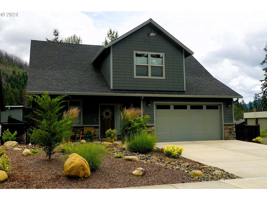 Stunning almost new with most furnishings and golf cart included! 2 primary bedrooms, 1 on main. Living room w/gas FP. Kitchen has granite counters, ample custom cabinets, gas range and a pantry. Upper level with a spacious family room, 2nd primary with full bath, 2 more bedrooms and another full bath. Large covered patio, large fenced yard with firepit. Close to the lake, Marina, park, community center.