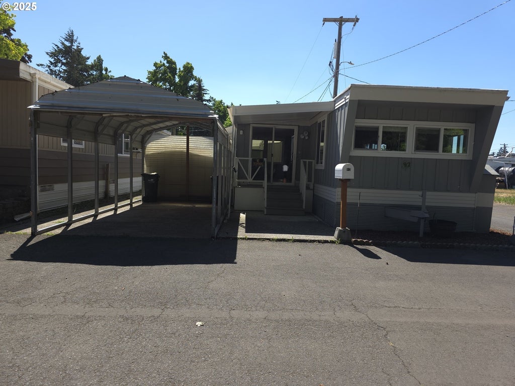 Paradise on the Willamette River in Shamrock Park! This vintage 1962 single-wide boasts a large living room with a spacious dining area. New waterproof luxury vinyl plank spans the entire home, giving a modern look. The kitchen has been updated with fresh paint, a new SS sink, quartz counters, a new propane gas cooktop, and a new SS overhead microwave. The bathroom has also been updated with new paint, sink, toilet, bathtub/surround, plumbing, and quartz counters. The primary suite has large built-ins. The exterior has new paint, dual-pane vinyl windows, a covered carport, and a storage shed. Great outdoor space for gardening, BBQs, and any outdoor activity.