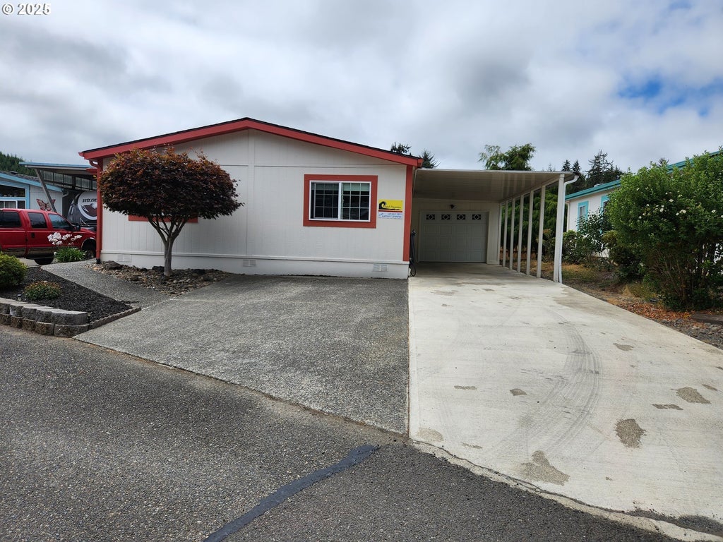 Just move right in! This 3 bedroom 2 bath home has been lovingly taken care of, Recent upgrades include a brand new composition roof on the home and new metal roof on the garage, three new skylights keeping everything light and bright, Freshly painted inside and out, new vinyl flooring in kitchen, laundry room and bathroom. Nice size backyard for relaxing and doing a little gardening. Large carport and enclosed garage with work area. for an additional charge extra RV or boat storage area. Lovely walking paths around the river, friendly neighbors. Space rent is $630.00 a month and includes water and sewer. Must be park approved.