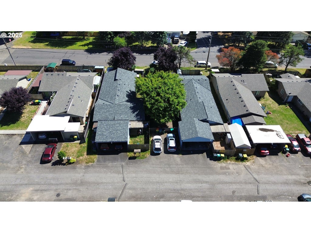 This property boasts two beautiful duplexes, each offering a mix of 2-bedroom and 3-bedroom units. Each 3-bedroom unit features a primary suite with an ensuite bathroom. All units are fully equipped with a kitchen, inviting family room, a fenced yard/private back patio, ample storage space, washer/dryer hook-ups, and cooling options (A/C or heat pump). A serene, shared courtyard, with a gorgeous Japanese maple separates the two buildings. The complex also offers two carports and convenient communal parking, providing ease for residents and guests. The exterior is well maintained, and the roof is new (2024).