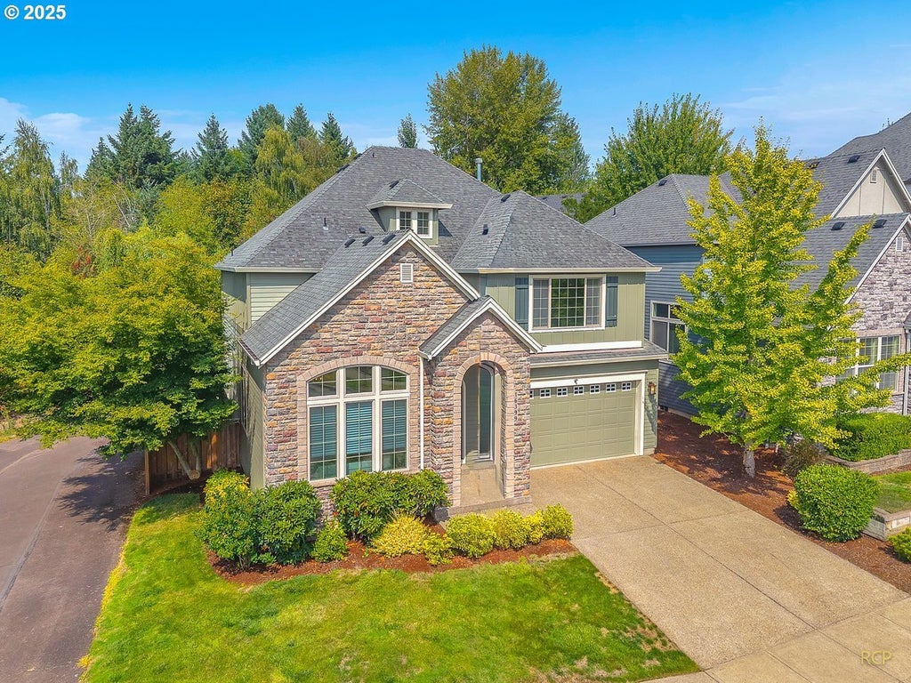 Spacious Craftsman home in a quiet, manicured neighborhood backing to greenspace with no neighbor on one side for added privacy. Walking distance to the new elementary school, this well-designed floor plan offers flexibility and comfort, with multiple living areas and abundant storage throughout. The main level features cherry hardwood floors, a vaulted living room with large windows for natural light, and a kitchen with gas cooktop, island, and generous cabinetry. A family room, full bath, and fourth bedroom with closet complete the main level—ideal for use as a guest suite, office, or den.Upstairs, the oversized primary suite includes a huge walk-in closet and private bath with soaking tub and dual vanities. Two additional bedrooms share a full bath, and a large bonus room provides space for media, play, or hobbies.Outdoor living is a highlight, with a covered back deck that allows for year-round enjoyment. The private backyard is framed by mature trees and opens to greenspace, creating a peaceful setting with extra elbow room.Additional features include three full bathrooms, an oversized garage with built-ins, and versatile storage throughout the home. Located on a low-traffic street, this property combines privacy and convenience, with easy access to parks, schools, and nearby amenities.