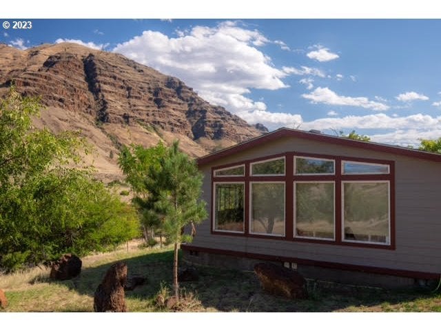 Imnaha Canyon Country at its best! Enjoy this 2 bed 2 bath manufactured home on 17.86 acres. The property has easement access to Basin Creek and Grizzly Ridge for foot and horse traffic leading to a remote and wild section of the Snake River Game Unit. It is also in the Chesnimuns Game Unit allowing for recreation and hunting opportunities. The property borders an 80 acre BLM Parcel to the north and the massive Zumwalt Preserve to the west meaning the view will never be obstructed by development. Just down the road is the public access to the river at the bridge for fishing or swimming. From the property, only a mile down the road is where the pavement ends and the Hells Canyon recreation area begins. Ride a recreational vehicle all the way to Dug Bar from the property. Enjoy high diversity of wildlife: Bighorn Sheep, Elk, and Mule Deer are commonly seen moving through the property to access the river. Eagles and falcons nest in the cliffs on the property. The private well pulls clean cold water from the Chesnimus Aquifer and has a brand new pump. The property benefits from new underground utilities including an excellent modern septic system and a new electrical power transformer, ensuring fewer power outages. Excellent A/C, forced air and a propane fireplace combined with R40 insulation keeps you warm or cold more efficiently. The house enters the shade during the hottest afternoons of the year and is accessed by a paved road. The house is set on a concrete perimeter foundation and has multiple pioneer apricot trees with plenty of acreage for an orchard or garden. Multiple sites for a shop or barn exist on the property for ease in developing the property for stock animals. Diverse terrain on the property, includes a locust grove, pasture, and multiple canyon rims. This is a 'one of a kind' property that includes all the multiple benefits of Imnaha Canyon Country living. See it today!