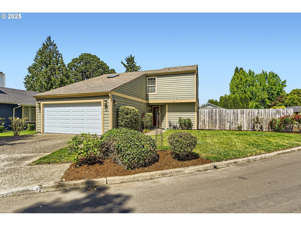 This lovely 4-bedroom, 2-bath home features a blend of comfort, style, and functionality. The beautifully updated kitchen includes stainless-steel appliances and new quartz countertops, perfect for everyday cooking and entertaining. New laminate flooring throughout the main level, complemented by luxury vinyl flooring in both bathrooms, bring easy maintenance and style to the main living areas. The 4th bedroom is located on the main floor and includes a sliding glass door leading directly to the backyard, offering flexible space to use as a home office, guest room, hobby area or other possible needs. Vaulted ceilings and skylights create an airy, sun-filled atmosphere throughout the home, keeping it light and bright. Enjoy a corner lot with a fenced backyard and covered patio. HOA includes its own community park and pool. It's also located just around the corner from Shadywood Park for more outdoor activities that include playground, picnic tables, and walking paths. Don’t miss this well-maintained gem in a fantastic neighborhood! [Home Energy Score = 4. HES Report at https://rpt.greenbuildingregistry.com/hes/OR10205069]
