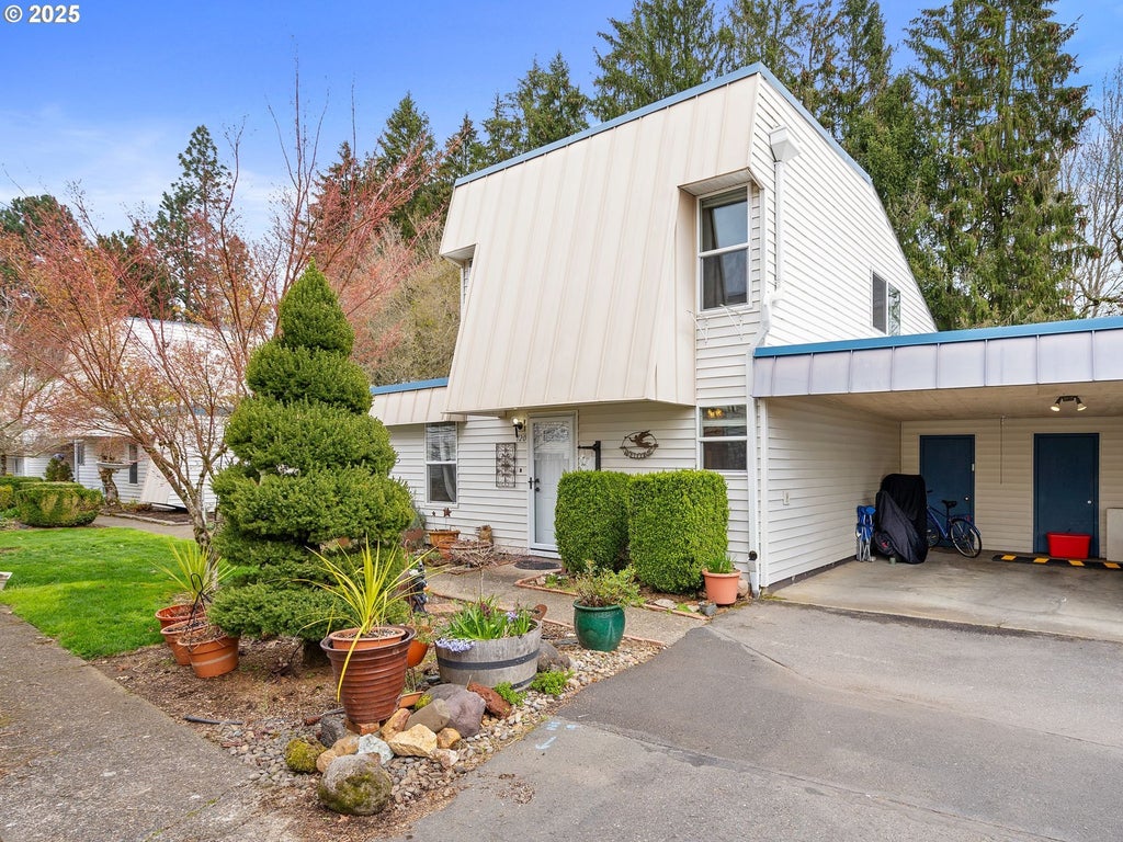 Stylishly refreshed Brier Crest Condo in a park-like setting! The newly renovated kitchen features quartz countertops, stainless steel appliances, and a disposal. Newer laminate flooring, water heater, and updated interior doors add to the fresh feel. A living room slider opens to a private backyard garden patio, perfect for relaxing and alfresco dining. The HOA maintains this lush green space while allowing owners to personalize their areas. Upstairs, the spacious primary bedroom features expansive vaulted ceilings. The HOA covers water, sewer, garbage, landscaping, gated RV parking, a basketball/tennis/soccer court, and the popular in-ground swimming pool. They replaced all roofs in 2018. Includes an adjacent carport, storage, and extra parking. The rental cap is not currently met. Close to Gradin Community Sports Park, downtown Gresham, and everyday essentials! Check out the Matterport 3-D Tour (and the hide furniture tool) to envision this space as your own!