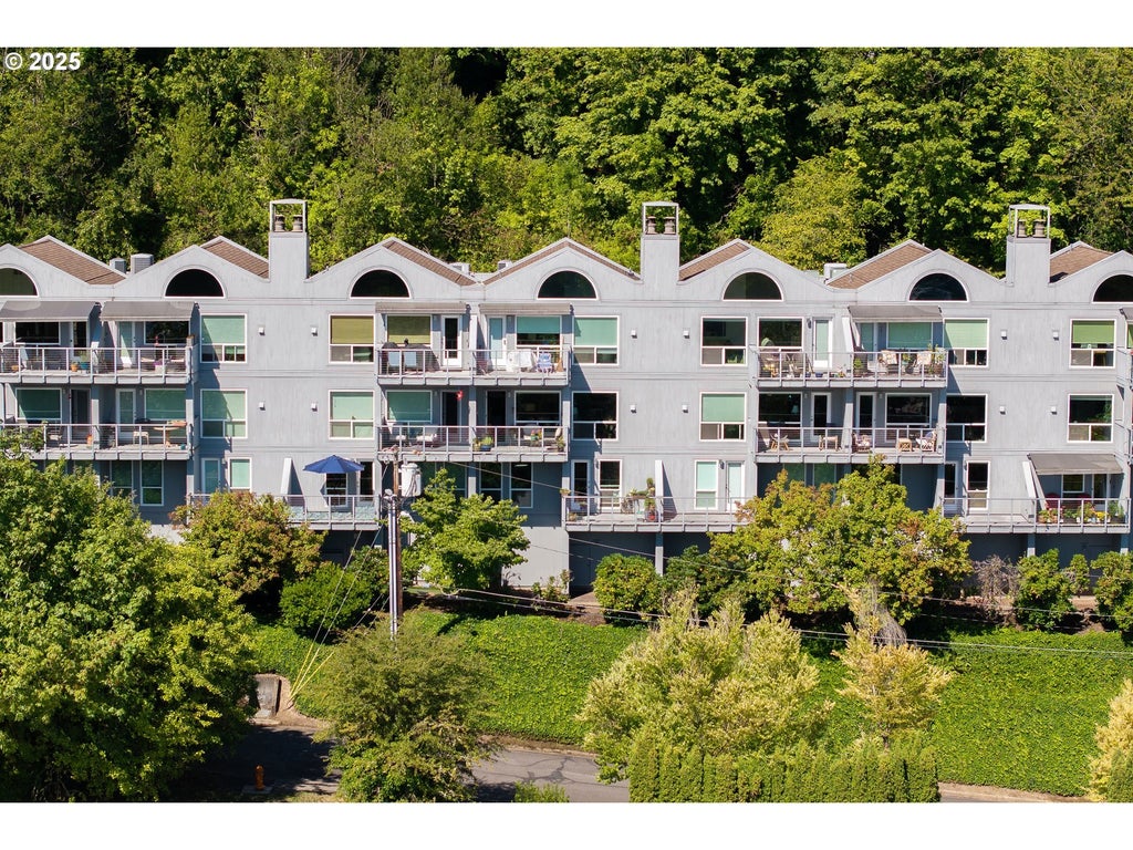 Nestled on the hillside in the coveted Johns Landing neighborhood, this light-filled home offers sweeping views of Mt. Hood, lush greenery, and a charming peek of the Willamette River. With an ideal east-facing orientation, you’ll wake up to breathtaking sunrises and enjoy all-day natural light through expansive windows that frame the scenery. Inside, the open kitchen and living area flow seamlessly, centered around a wood-burning fireplace and beautiful hardwood floors, with direct access to a view balcony. The updated kitchen features premium, sleek appliances and abundant storage throughout. Downstairs, new wool carpeting adds comfort to the bedroom level, where the spacious primary suite boasts a generous walk-in closet, ensuite bathroom, and private balcony. Complete with a fully finished garage and an additional carport parking space, this home offers the ease of condo living with the feel of a single-family home. All in the heart of Johns Landing - with shops, cafes, restaurants, and waterfront trails just minutes away.