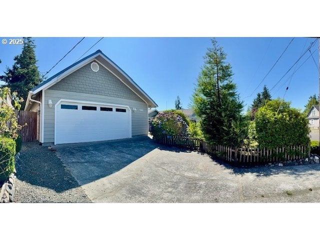 Tucked away in Eastside neighborhood, this charming updated home offers secluded front yard, mature landscaping and oversize garage. Enjoy quite mornings on the wooden deck courtyard and the fragrant hydrangeas. This heart of the home kitchen shines like a star with a fresh makeover including new cabinets, counter tops, tile backsplash & ss appliances. Living room is open to the dining room both drenched in natural morning light and view over the backyard. Corner pellet stove will keep you cozy on the chilly winter nights. The primary suite has a full bath with shower stall. Guest bath offer a shower over tub. Sliding door lead to a private backyard that is great for entertaining. Small patio, raised beds and fully fenced all lend to creating a your private sanctuary. Oversized garage includes laundry area, storage shelves and space for the toys. North side of home features a dog run. Home is updated throughout in 2018 with: metal roof, new kitchen, laminate wood and carpet flooring, Vinyl windows, Fiber cement siding, garage door. This little gem won't last long. Book a tour today!