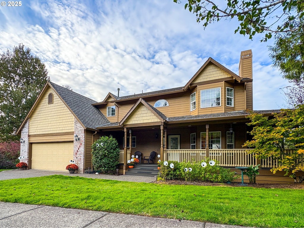 Porch swing mornings, view deck evenings. This 1997 PNW Craftsman commands a corner lot with 2,404 sq ft (buyer to verify but we think it's larger), 3 bedrooms + flex sitting room, 2.5 baths, 2 living rooms, and 2 gas fireplaces makes for plenty of zones to live, lounge, and host. The remodeled kitchen is the hub: stainless steel appliances, peninsula seating for barstool chats, a café nook framed by a bay window, and a formal dining room that opens through French doors to the deck. Translation: prep inside, gather everywhere. Upstairs, the primary suite adds a true sitting room (office/den/workout - choose your adventure). It already has closets and a door; buyers to verify if a simple wall could convert it to a 4th bedroom. Through the Primary suite’s French doors, step to a private deck with territorial views for a sunrise latte or starry night wind down. Outside delivers signature Northwest living: a wraparound covered front porch built for year round hangs and a private hot tub off the side deck for instant exhale. New carpet throughout keeps things fresh and move in easy. Storage fans, rejoice: a large basement height crawlspace with full size exterior door is ready for gear, décor, and hobby overflow. Parking is straightforward with a 2 car garage, driveway, and street options. Location perks: Happy Valley is a sought after suburb near Portland with everyday convenience on tap. Roughly 13 minutes to Clackamas Town Center & Target, great dining nearby, and quick access to I-205 for regional commuting. Quiet, well-kept mature neighborhood with walking trails close by for that nature recharge.