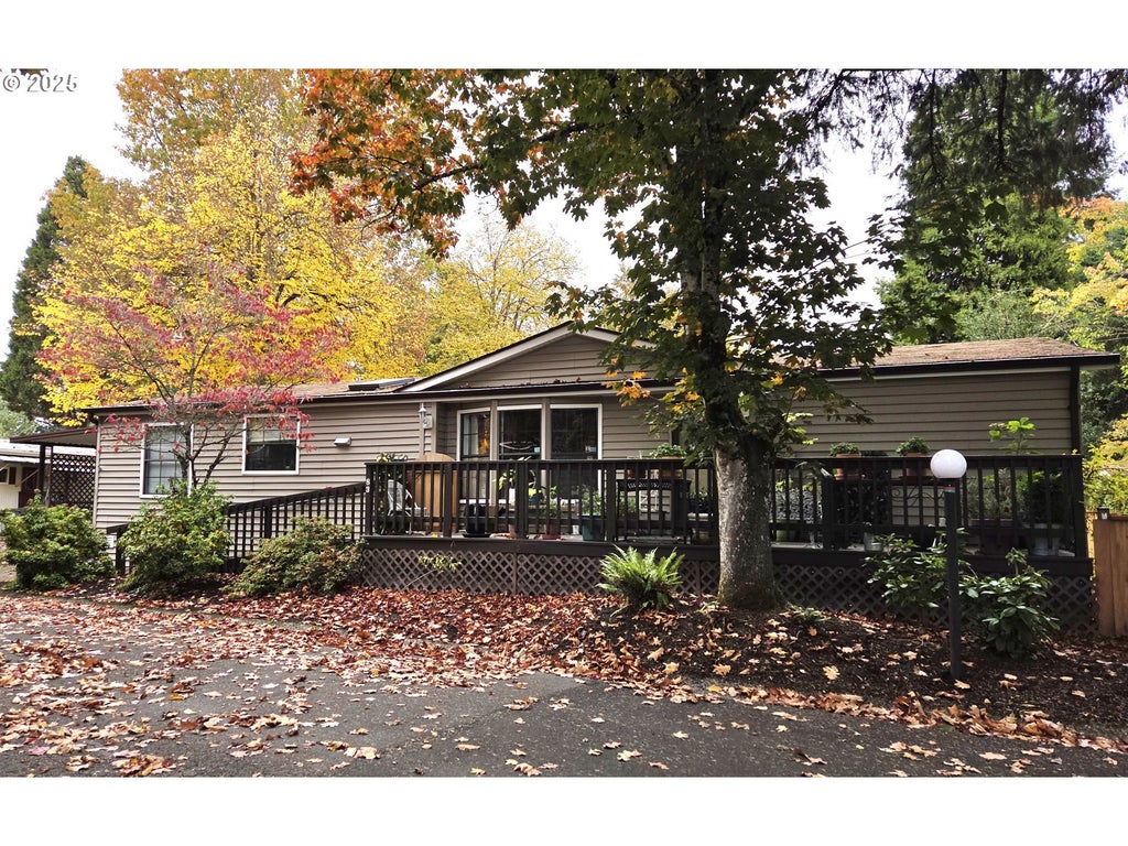 Welcome to the well maintained 1987 manufactured home offering 3 bedrooms & 2 bathrooms in a peaceful 55+ park. Home is located on a large corner lot in a quiet setting in the park. Step inside to discover vaulted ceilings, skylights and an open floor plan filled with natural light. The spacious kitchen features an island, ample storage and includes all the appliances. This home is perfect for everyday living and entertaining. Comfort upgrades include ductless heat pump, newer furnace & water heater, keeping you cozy year-round with energy efficiency in mind. Additional recent upgrades were kitchen & bathroom faucets and new toilets. The large primary suite includes generous closet space, garden tub & walk-in shower. Another unique feature are the speakers throughout the home currently connected to an AM/FM sound system. Additional enjoy outdoor living on the welcoming front porch deck or the covered back deck ideal for relaxing. The new fully fenced yard offers peace of security plus a low maintenance yard and plenty of outside storage. Space rent includes water, sewer, garbage road maintenance, park amenities(i.e. pool, hot tub, library, meeting room and a post office) making this home both comfortable and affordable. A wonderful place to call home.