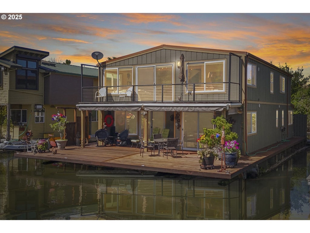 Do you long for a slice of heaven on the river with views as far as the eye can see? This expansive section of the Multnomah channel will surround you with nothing but nature as you look out at the protected, Nature Conservancy. This floating home was remodeled in 2011 from stem to stern. The outdoor space has every thing you need for river living; 24' boat platform, shed, pass through storage, remote controlled awnings, huge deck, outdoor shower, 2 kayak platforms & upper balcony. All the decking is exquisite IPE wood, long lasting, durable, and comfy on the feet. Indoors the walls are clad in cedar ship lap and cedar tongue and groove ceilings with exposed beams. The flooring is oak and the main bath& stairs have gleaming teak wood. The open kitchen has stunning granite, bamboo cabinets, gas cooking, farmhouse sink, quiet Bosch dishwasher and flex furniture pieces on casters. Blinds throughout are easy operating up/down blinds. The main level features a bedroom that opens to the deck w/ 2 closets. The main bath's eye catching sink is vintage Carrara marble from France. A Japanese soaking tub & cedar sauna are also in the main bath. Upstairs the second bedroom can accommodate a queen size bed. The generous landing space has more storage and a walk in closet. But wow, the primary bedroom! Massive space, vaulted ceilings, ensuite travertine tile & granite bath, mini-split heating & cooling, huge nook for home office or gym, & a slider to the upper balcony w/ breathtaking views. There is an airflow system by Lunos that creates air exchange throughout house, plus a tankless on-demand hot h2o heater. Float rated a 4 in 2023. "4" qualifies for Banner Bank's 30 yr. loan. Sauvie Island has it all, Salmon & Sturgeon fishing off your deck, Topaz Farms for food & music events, or just hop in your kayak, SUP or boat to destress from the day. The Serenity that this location has to offer is unparalleled. This home is where quality of construction meets quality of life.