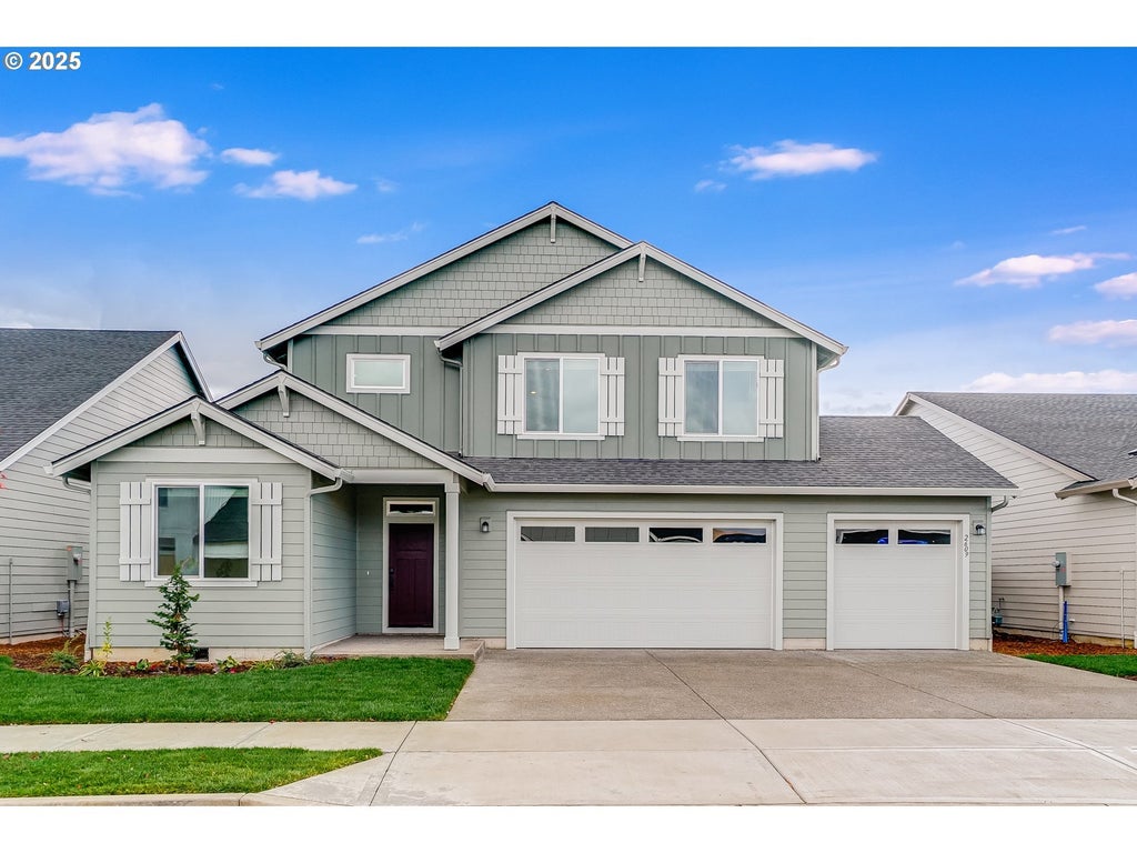 This new construction Larwood plan on a spacious homesite with a three-car garage offers a generous open-concept design with the kitchen, dining area, and fireplace-warmed great room flowing together and extending to a covered patio. A bedroom just off the entry is ideal for guests or a private office. Upstairs, three more bedrooms surround a versatile loft, including a luxurious primary suite with a soaking tub and walk-in closet. Upgraded finishes include white cabinets and quartz countertops throughout. The Everything’s Included® package adds air conditioning, a refrigerator, washer and dryer, blinds, fencing, and front yard landscaping with irrigation. Located just 10 minutes from I-5 and less than 10 minutes from the new In-N-Out, this home offers both comfort and convenience. Located on homesite 94, this home is move in ready! Rendering is artist conception only. Photos are of a similar home, features and finishes will vary.
