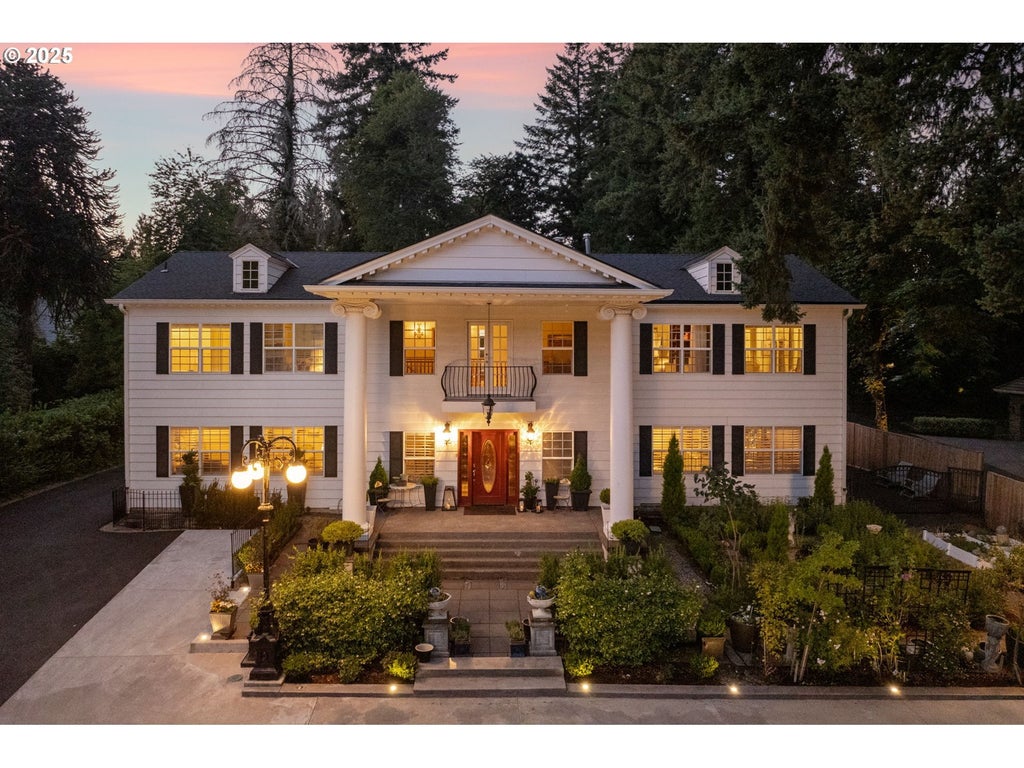 OPEN TUESDAY JULY 22ND FROM 11AM TO 1PM. Set back on a beautifully landscaped lot with a newer garden design and circular driveway, this impressive traditional residence offers timeless style and modern comfort. Nestled on 1.03 acres, the home features an attached 3-car garage and a serene, park-like backyard with a sparkling pool—perfect for entertaining or quiet relaxation. The expansive grounds provide ample room for play or potential development of an ADU or separate guest house; buyer to do due diligence. Inside, a dramatic foyer with soaring ceilings opens to a second-floor wraparound balcony, creating an immediate sense of grandeur. The classic layout includes a formal living room, elegant dining room, and a cozy reading nook—all seamlessly flowing into the heart of the home. The oversized entertainer’s kitchen is a showstopper, complete with high-end appliances, casual dining space, and a spacious family room that opens to a covered patio. From here, enjoy panoramic views of the lush garden, pool, and surrounding property. The generous owner's suite is a private retreat featuring a fireplace, a sun-filled dressing room, and a spa-inspired bathroom with a walk-in shower and soaking tub. Upstairs, you'll find two additional bedrooms, a full bath, and a highly desirable home office with abundant natural light. One of the bedrooms is ideally located on the main floor, perfect for guests, in laws, or aging in place. The unfinished lower level offers endless possibilities—whether you envision a game room, home theater, wine cellar, or ample storage space. Located just minutes from Lake Oswego’s renowned dining, shopping, top-rated schools, and Oswego Lake Country Club, this property is a rare opportunity to own a slice of classic luxury with room to grow.