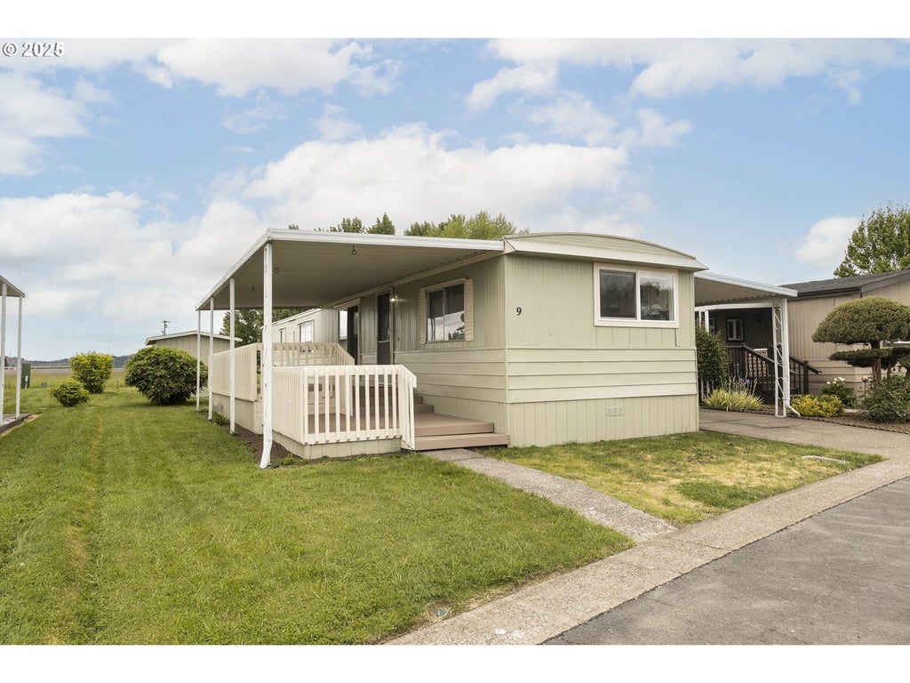 Seize the lowest-priced opportunity to own a home in McMinnville’s coveted 55+ Olde Stone Village! This well-maintained 1978 single-wide manufactured home offers 938 sq ft of charm with 2 bedrooms, 1 bathroom, and an open floorplan. Savor a bright kitchen featuring a breakfast bar, built-ins, and an updated window, perfect for cozy mornings. The slider leads to a spacious porch, ideal for relaxing. Updates including a hot water heater and forced air furnace paired with an existing heat pump, ensure year-round comfort. $1,058 monthly space rent includes park installation of new concrete driveway and walking path. Enjoy a vibrant community with a modern clubhouse, heated seasonal outdoor pool, and pickleball courts. Scenic paths near the Evergreen Aviation Museum add daily tranquility. With access to downtown McMinnville’s wine country charm, this affordable gem delivers unmatched value. Schedule your tour today! Offers subject to park approval, please refer to Olde Stone Village for park rules, regulations and any park questions as all park information is subject to change. ** Wall sconces/lights on either side of primary bed excluded from sale **