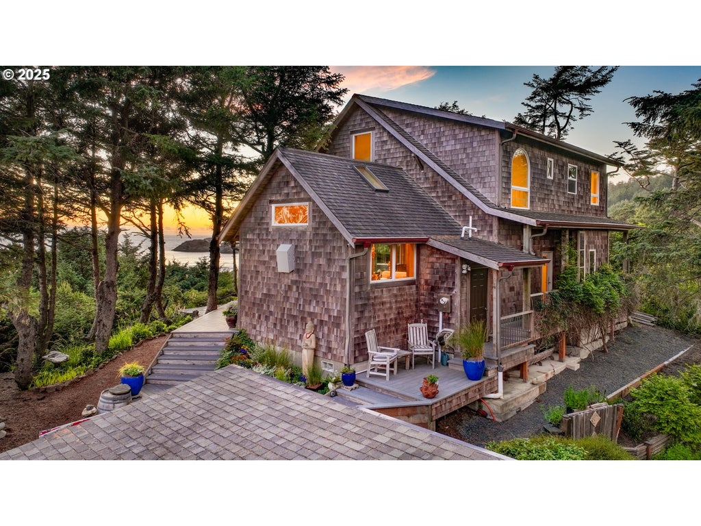 Immerse yourself in this peaceful and captivating setting perched up on a private .37 acre parcel where one can relish in the spectacular views of the Pacific Ocean and Haystack Rock! This rare property is located in the coveted north end of Cannon Beach & consists of the main house on the upper level of the lot and the guest house on the lower. Boasting a total of 2870 sqft , 3 beds, 3 baths, 2 car garage , open living concept, gourmet kitchen, high end appliances, hardwoods throughout ; this magical and secluded estate delivers! Endless options are at your finger tips with the detached guest house having its own separate utilities , parking, and an additional 500 sqft of space can potentially be added to the existing living. A fantastic opportunity to own this extraordinary sanctuary- schedule your private showing!