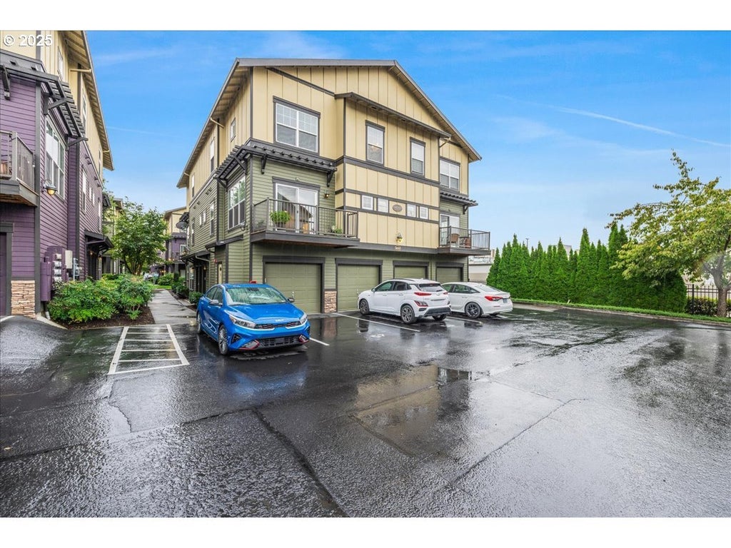 Barely lived in, like new condo in the heart of everything! Gorgeous gated community with rec area and beautiful grounds. Dual primary suites, both with vaulted ceilings and attached bathrooms. High ceilings throughout, updated laminate floors, gas fireplace. Open kitchen with quartz counters, eating bar, island, pantry, stainless appliances, (all included!) Nook with private deck. Laundry with washer/dryer included. Attached oversized garage. Walk to restaurants and shopping and easy freeway access.