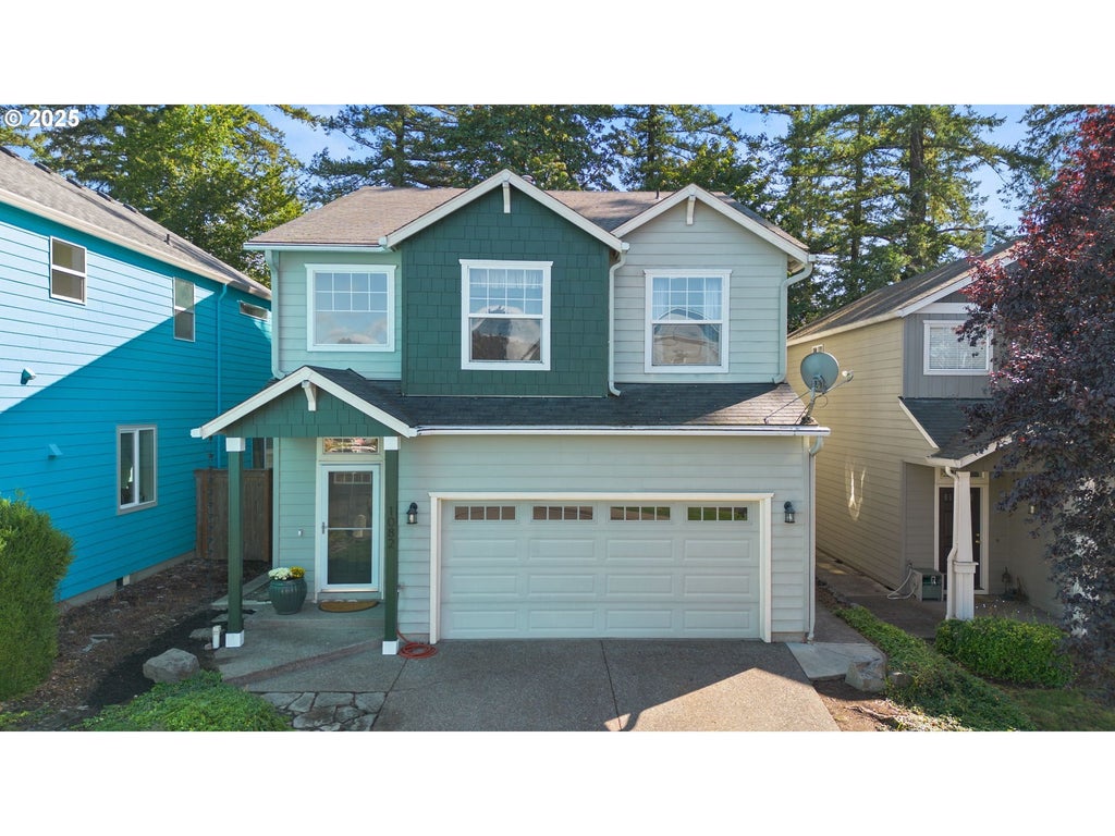 Welcome to this inviting 4-bedroom, 2.5-bath home in the highly sought-after Sunset Ridge neighborhood. The spacious great room flows into the dining area and updated kitchen, where you’ll find quartz countertops, shaker cabinets, stainless steel appliances, and easy access to the backyard through a sliding door. Step outside to a covered patio overlooking the private backyard, complete with a fire pit and raised flower beds perfect for relaxing or entertaining. Behind the home, a trail leads to an open area with a small creek that runs year-round, adding to the natural charm of the setting. Upstairs, you’ll find all bedrooms and the laundry room for added convenience. The primary suite features a private deck, walk-in shower, dual vanities, and a walk-in closet. One of the four bedrooms is non-conforming, offering flexibility for a home office, guest space, or loft area. As part of the Sunset Ridge community, you’ll enjoy access to a clubhouse with a pool, spa, sport courts, playgrounds, gym, and more. Conveniently located near schools, dining, freeway access, and PDX airport, this home offers the perfect balance of comfort and lifestyle.
