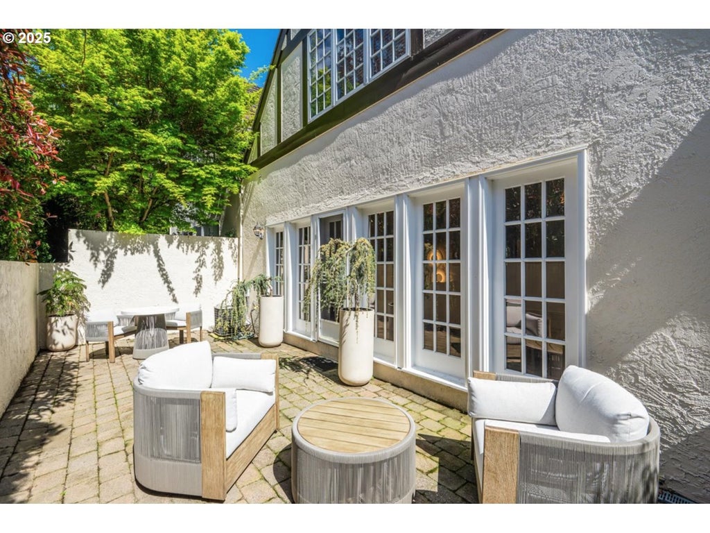With timeless Tudor charm and thoughtful updates throughout, this inviting condo offers a peaceful retreat with walkable perks. Inside, hardwood floors and custom wrought iron details add character and warmth, while French doors lead to a walled cobblestone patio that feels like a secret garden. The layout is flexible and functional, with two bedroom suites upstairs and a bonus studio space on the lower level—perfect for guests, or quiet movie nights. The primary suite includes washer/dryer hookups and a bathroom with marble tile floors. Just across the street, the Village Center brings daily essentials within reach: coffee, dining, groceries, and community — all right outside your door. OPEN HOUSE SUNDAY 10/26 from 1-3pm.
