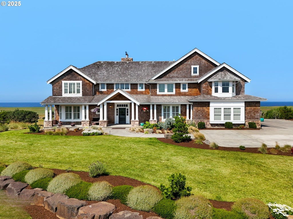 Welcome to your magnificent coastal estate in Pinehurst Estates, a luxurious sanctuary spanning 6,583 sq. ft. This exquisite home offers six bedrooms and six bathrooms, most with stunning ocean views. Timeless elegance meets modern amenities across three levels, perfect for luxurious living and entertaining. Unobstructed ocean views welcome you as you enter the grand room with a gas fireplace and a dining area flowing into the gourmet kitchen with high-end appliances and a walk-in pantry. The home features modern conveniences like a Control4 system, Toto automatic washlets, circulating hot water, and heated tile floors. The exterior boasts a large covered front porch, landscaped grounds with irrigation, and expansive lawn areas. The gated community offers amenities like a heated pool, jacuzzi, tennis court, basketball court, and a boardwalk to the beach just a short walk away. Experience coastal luxury living at its finest in this extraordinary Pinehurst Estates home.