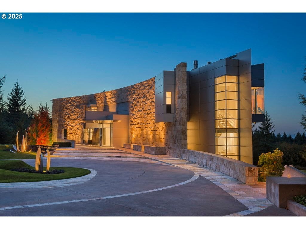 Architecturally significant and stunning design throughout this custom modern home tucked away in the West Hills on 10 acres within Forest Park. This home can not be recreated - from the imported stones and woods, the steel and glass exterior, the commercial level engineering and construction, and the countless craftsman who spent years building it. Walls of glass, 20+ foot ceiling heights, incredible outdoor living spaces, all combine to form both a home and a piece of art. Main level offers expansive great room, floor to ceiling steel fireplace, commercial-level chef's kitchen with pizza oven, door out to covered patio taking in views of the yard, Forest Park, and four mountains. The main floor also offers an extra bedroom suite. Elevator access to all floors including the top floor primary suite with spa-bath, open office with incredible views, and the third bedroom suite. Lower level offers flexibility with a family room, sound-proof recording studio, work-out area, as well as a full length indoor pool and spa with sauna, steam room, and showers. The property is complete with a detached private guest house with separate driveway and entrance. Complete with 6 car garage, state of the art technology throughout the home, stunning grounds, and outdoor gas fire pit. All this just minutes to NW 23rd and everything downtown Portland has to offer. Unparalleled privacy and a lifestyle for the truly discerning.