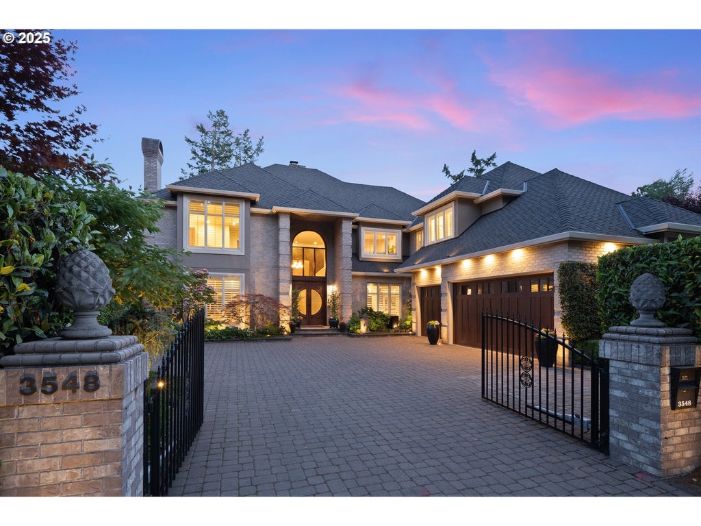 Step inside your own private resort, where every day feels like a vacation. Behind the gated entry, this meticulously maintained lakefront estate features 75 feet of prime south-facing Oswego Lake frontage, a resort-style backyard, and timeless architecture. A paver motor court and three-car garage set a stately tone. Inside, the marble foyer opens to rich Peruvian mahogany floors and elegant lighting that guides you through each space. To your left, the formal living room invites gatherings around a limestone fireplace, while the stylish wet bar connects seamlessly to the covered outdoor heated dining area with built-in grill that is perfect for casual evenings or summer dinner parties. The kitchen is warm and welcoming, with premium appliances, a gas range island, double sinks, and a spacious pantry. Enjoy quiet mornings in the breakfast nook overlooking the lake or host special occasions in the nearby formal dining room. Beyond the bar, a discreet stairwell leads down to an Italian-inspired wine cellar and private billiards room. Upstairs, the primary suite is a true escape. A grand picture window frames sweeping lake views, while the spa-inspired bath includes a jetted tub, dual rain showers, and a skylight that floods the space with natural light. Three additional bedrooms are thoughtfully spaced for privacy, along with a dedicated office with built-ins and lake views, fitness room with mirrors, and sauna. Outside, every element is crafted for lakefront living. Swim in the sparkling pool, unwind in the spa, and relax on the composite deck surrounded by lush landscaping and ambient lighting. The oversized boathouse, dock, and cascading waterfall complete the setting with zen-like tranquility. With resort-style amenities, an unbeatable location, and access to Lake Oswego's top-rated schools, this estate offers the pinnacle of luxury living.